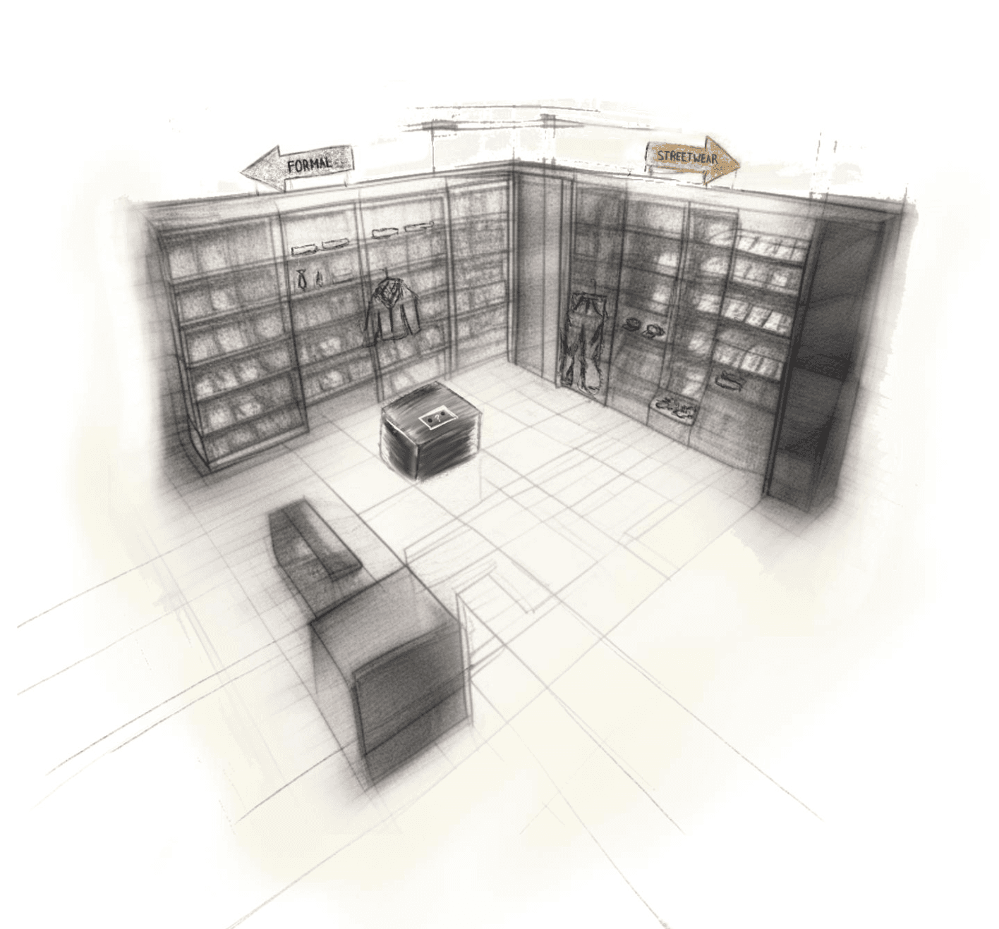 In the final concept, the store’s layout is flipped: