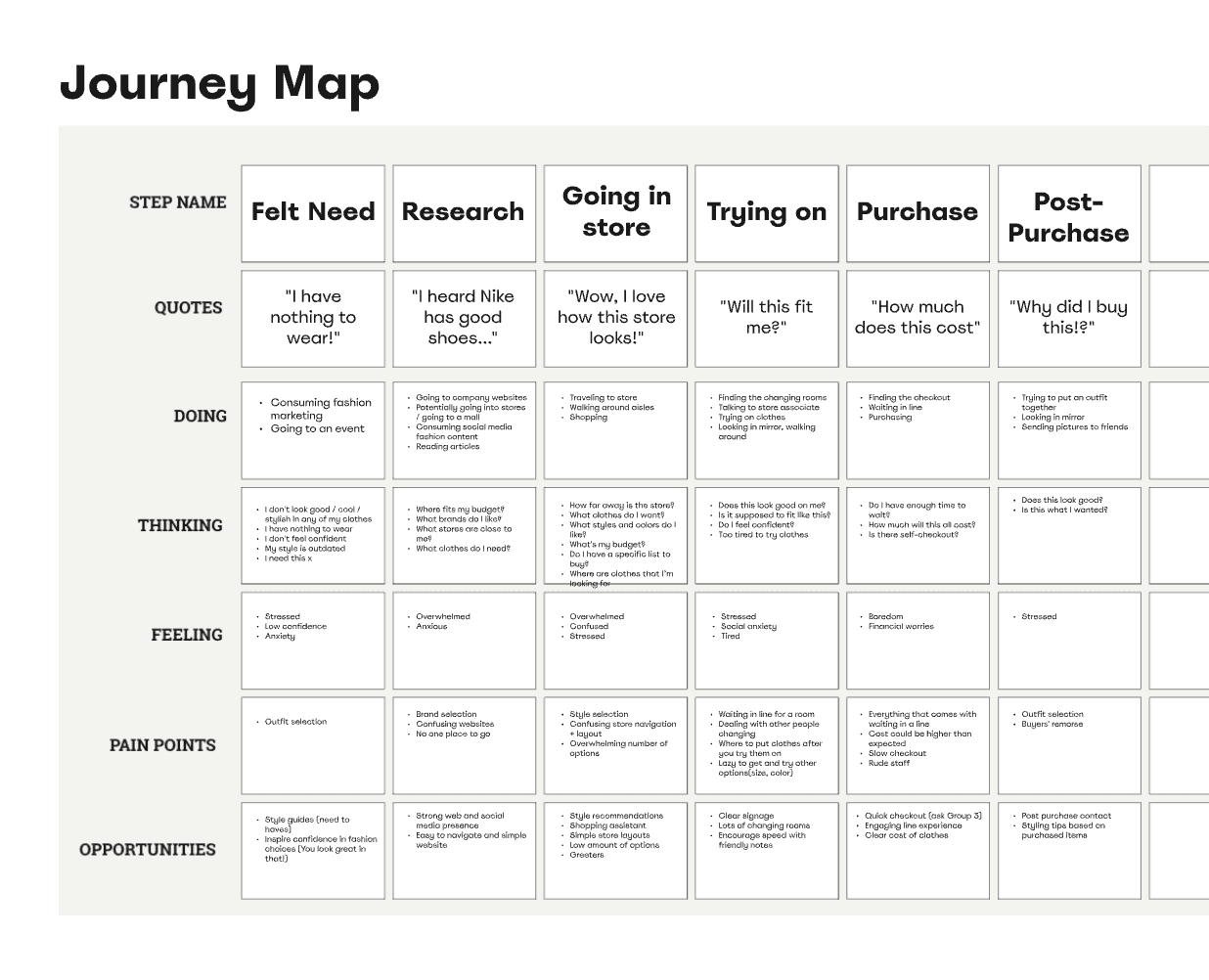 Then, we mapped our own shopping journeys to try and spot any gaps.