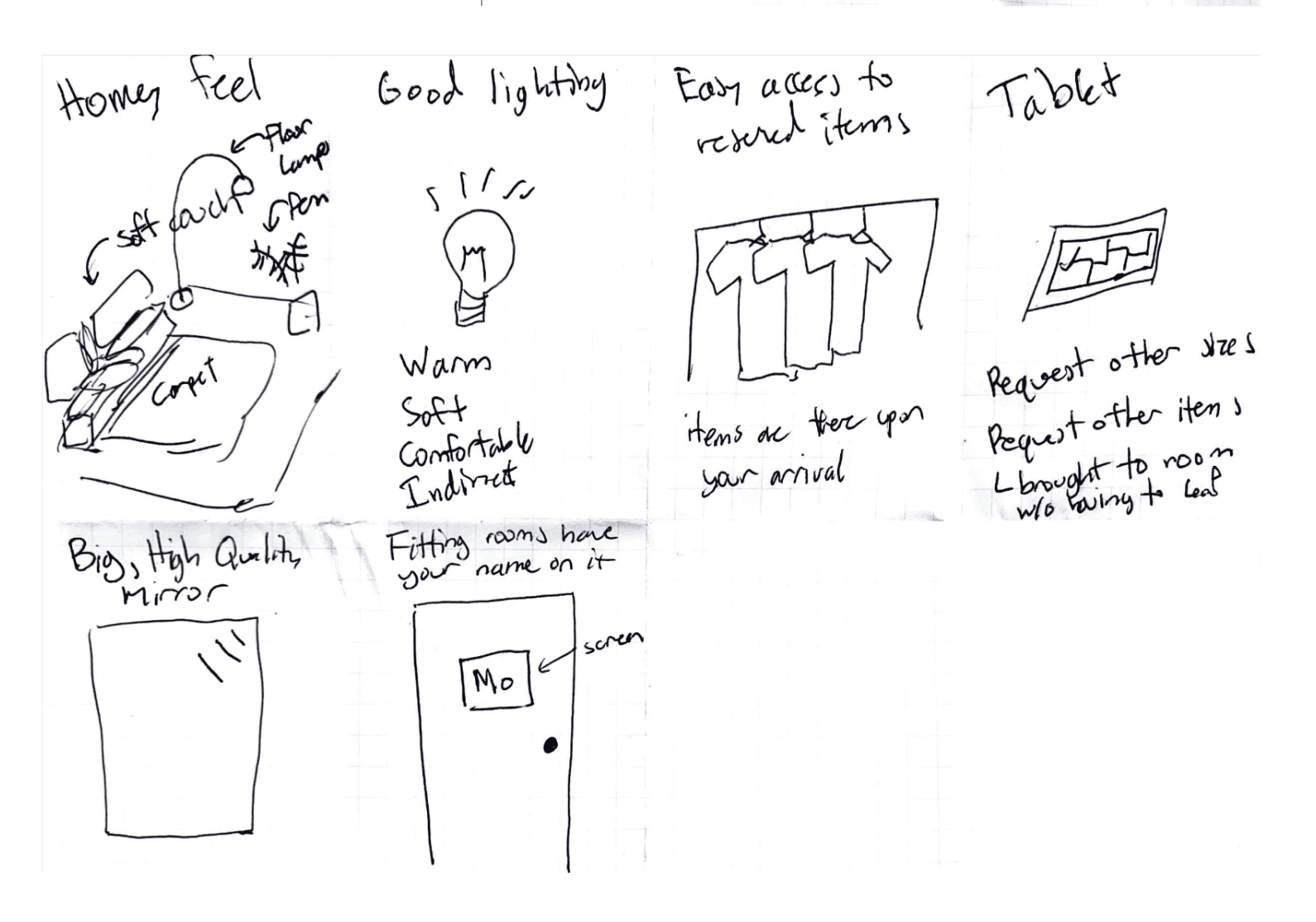 Asking for multi-sided mirrors and rooms big enough to try outfits with friends. This reinforced our hunch that the fitting room is a social and emotional space, not just a measurement box.