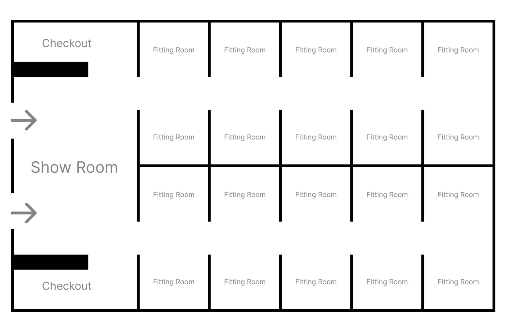 How many fitting rooms can we include without making the corridor feel like a hotel hallway?