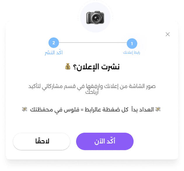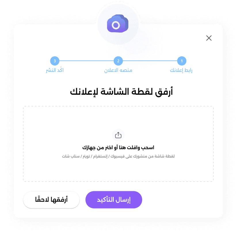 Once they click that button, they get a direct pop-up with two questions: “Which platform did you post this ad on?” and “Can you please share a screenshot of your post?”