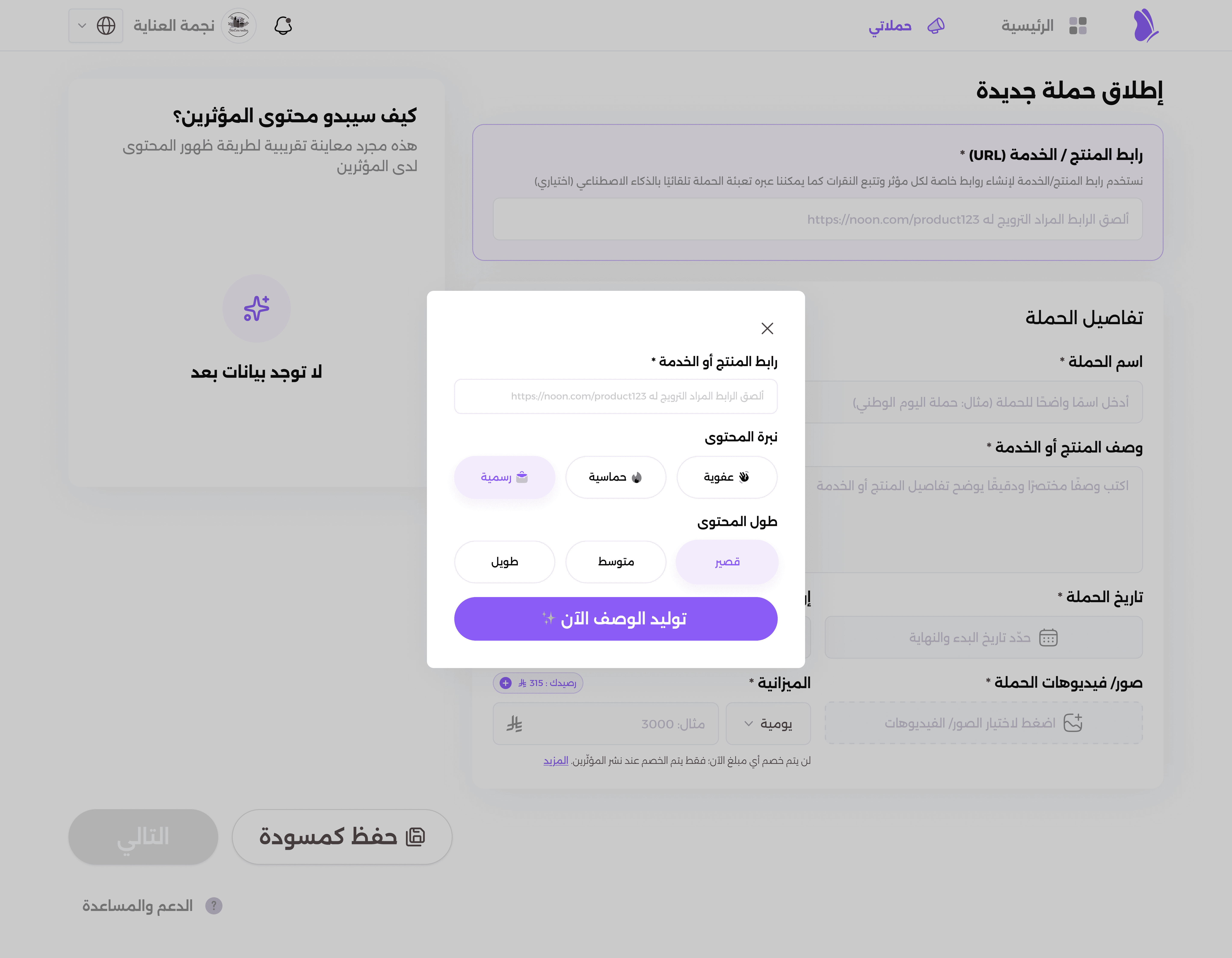 “This campaign is ready. Add X SAR to your wallet to launch it.” It’s honest about what’s missing, but it doesn’t erase the work they just did.