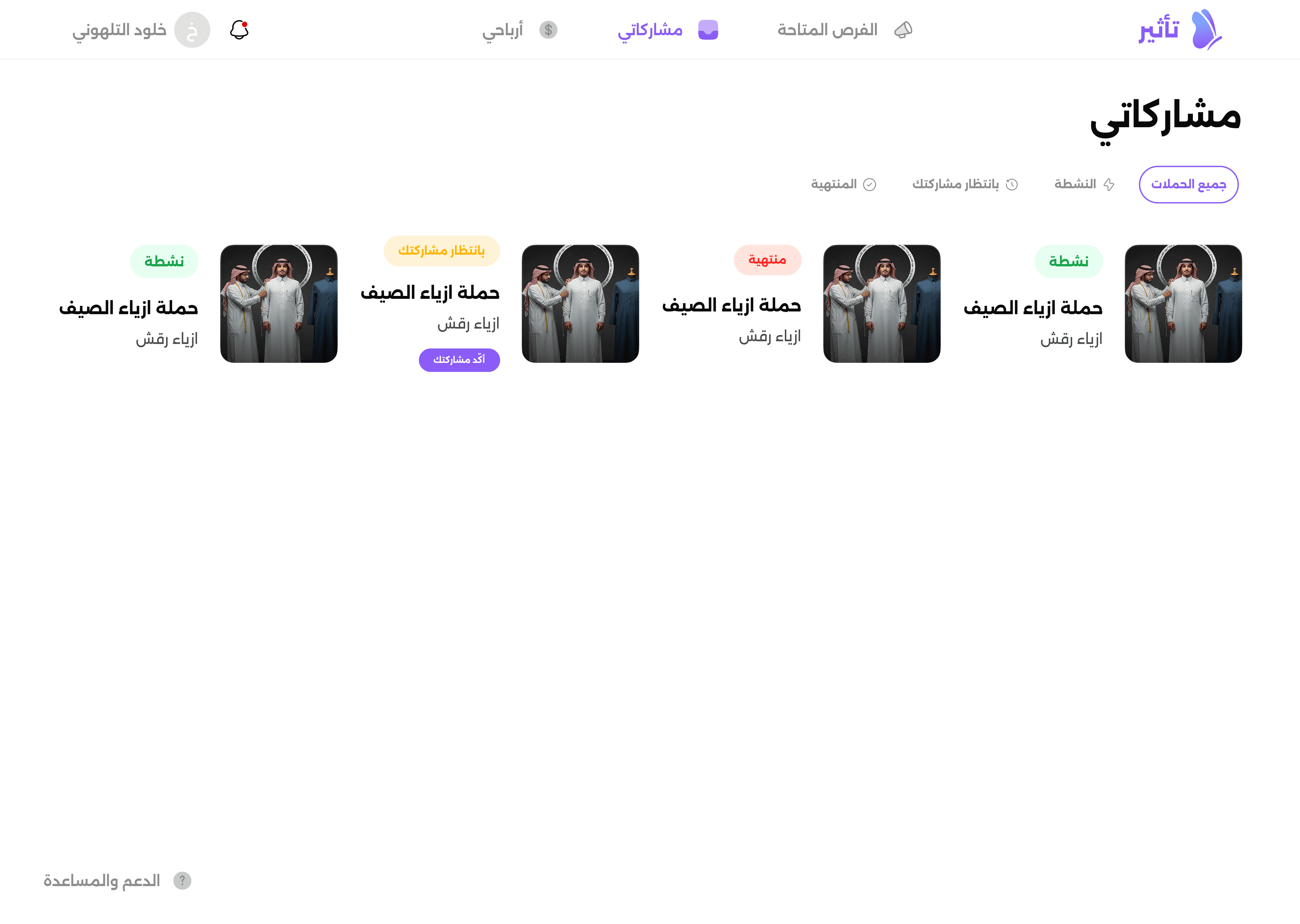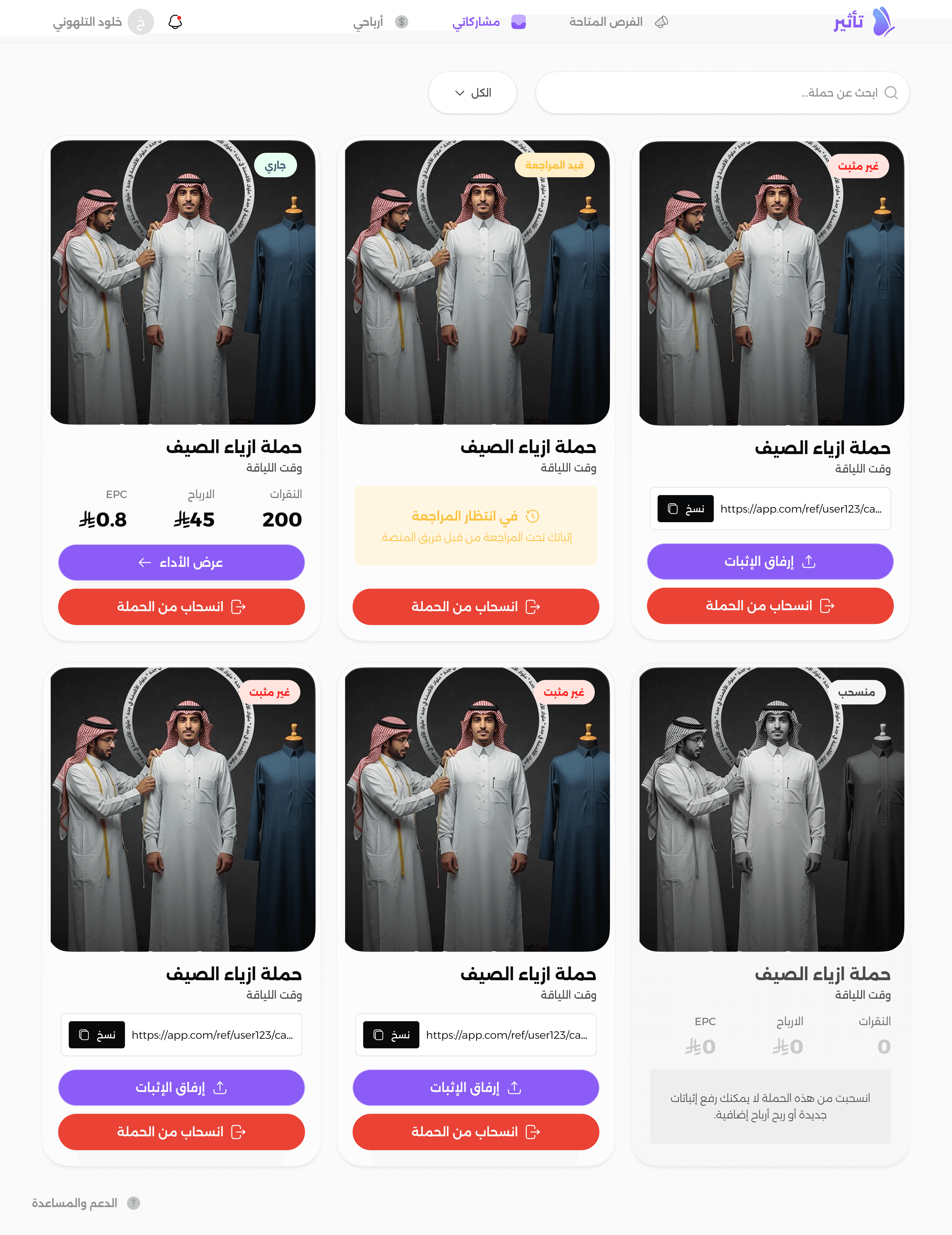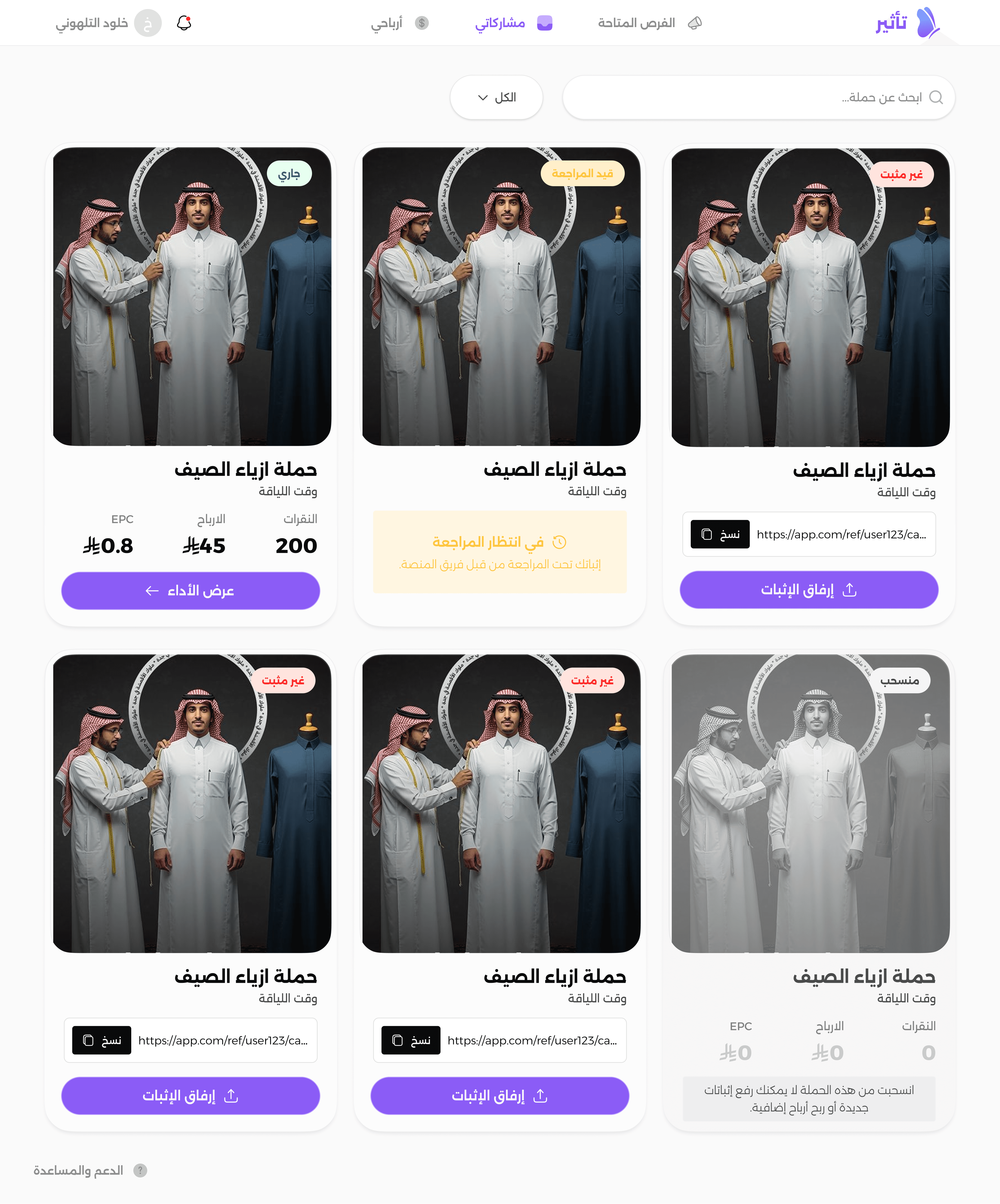 This is the “My Participations” page. We added a state called “Needs verification” with a button that says “Upload screenshot” to complete the interaction.
